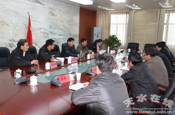 1月7日下午,中共天水市委书记马世忠主持召开市委常委会议,研究《市委市政府关于改进工作作风密切联系群众的实施意见》、《天水市关于推动非公有制经济跨越发展的意见》、《法治天水建设实施纲要》、《天水市加快水利改革试点工作实施方案》等事宜,听取了中共天水市委六届四次全委(扩大)会议暨全市经济工作会议筹备及《天水市城市总体规划(2005-2020)》修编等工作进展情况汇报。